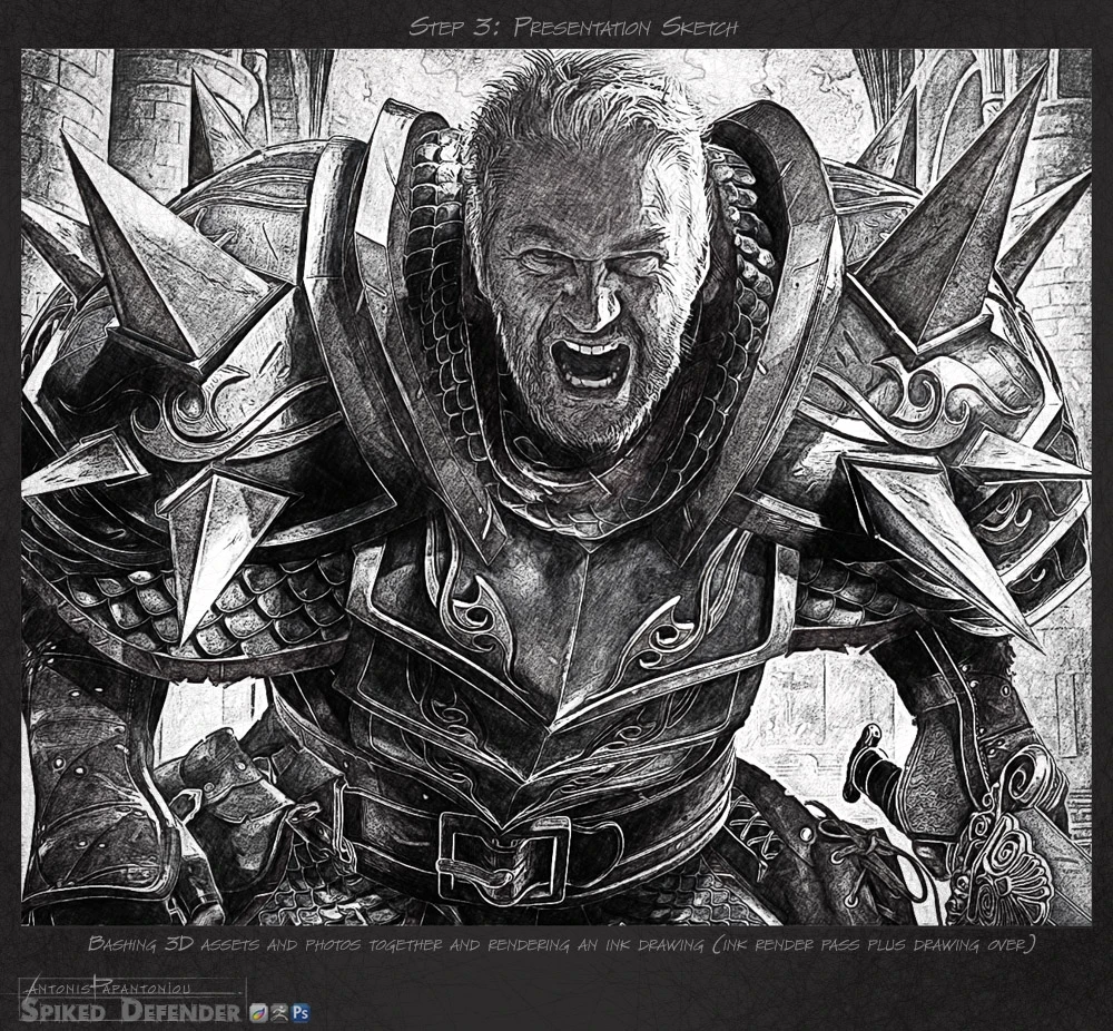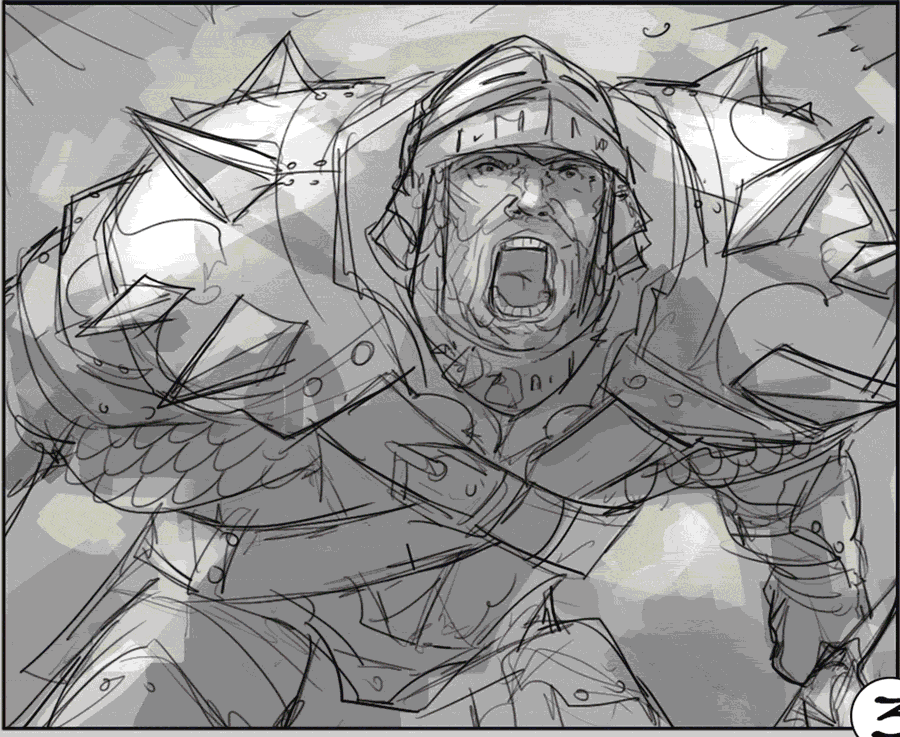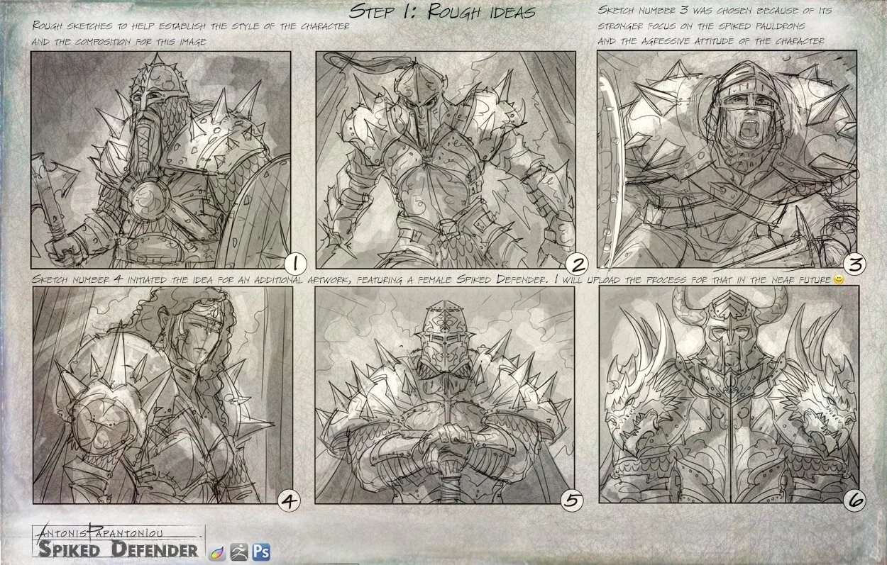 Female and male versions of Spiked Defender card artworks for the Hero Realms deck building game