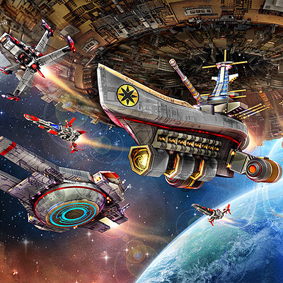 Star Realm large ships and bases of the Blob alien faction